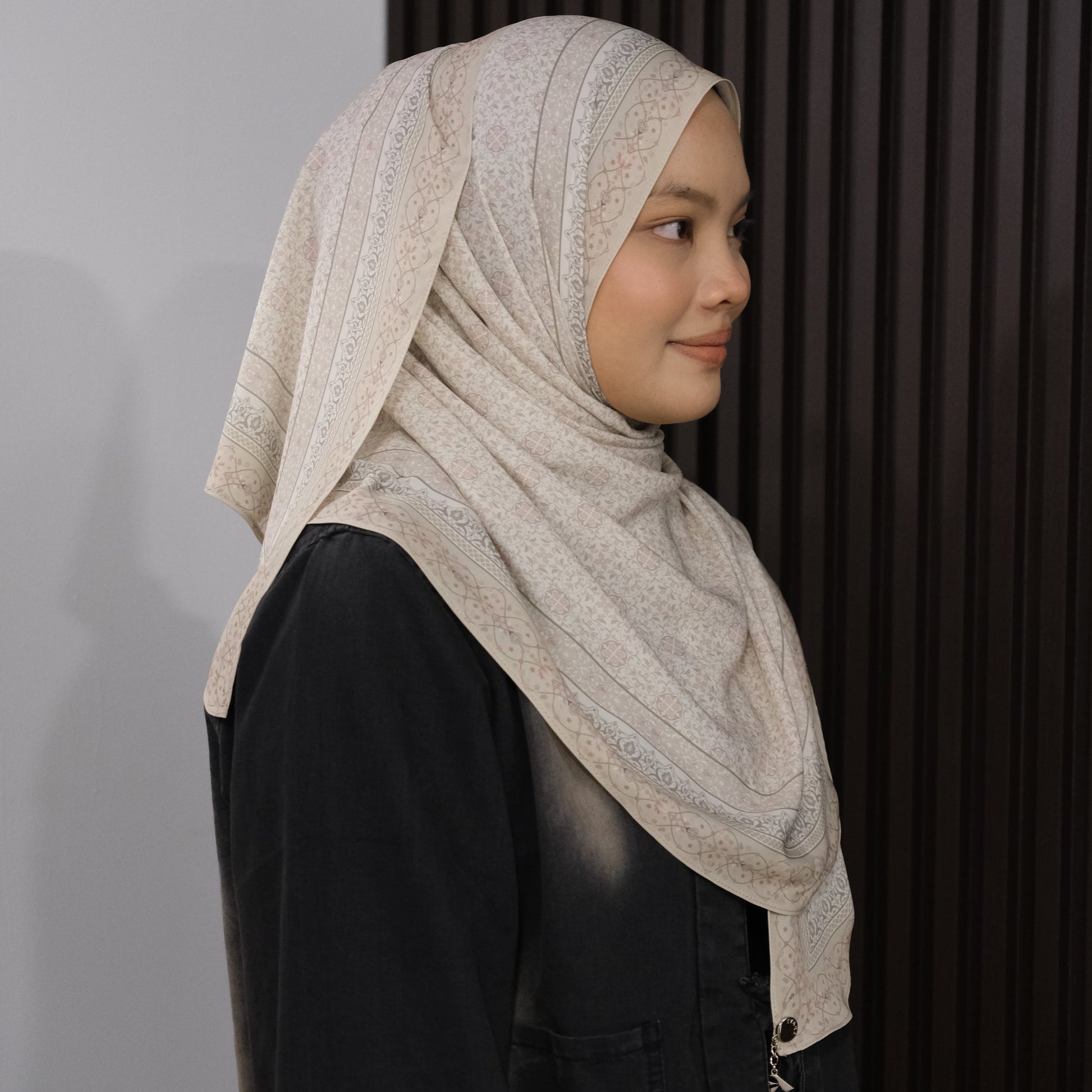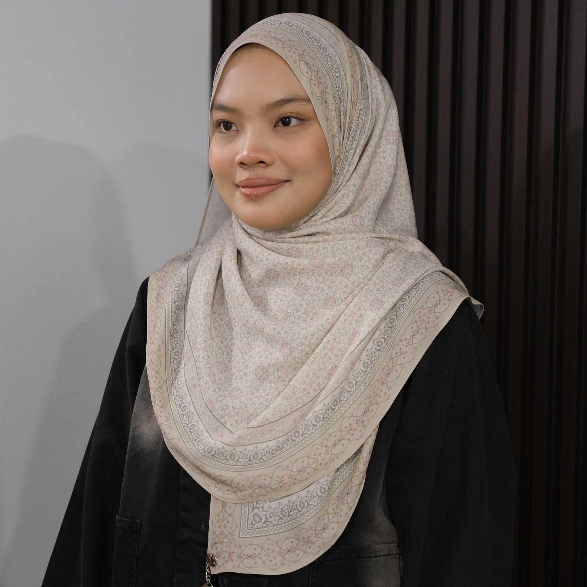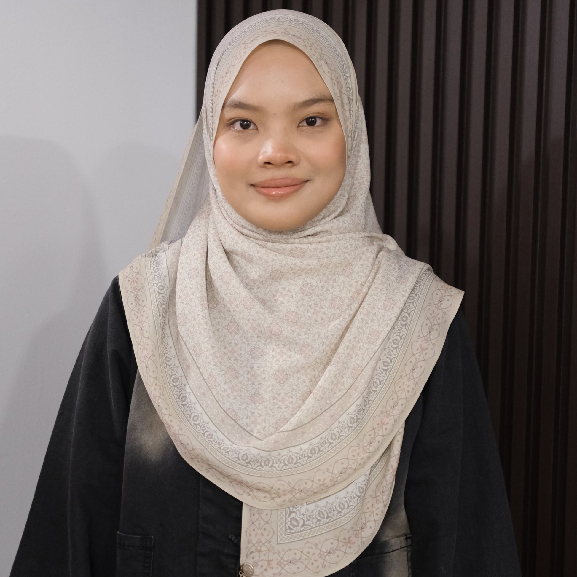 The Akasia collection is a tribute to timeless femininity and soft elegance. Each piece is thoughtfully designed with a minimalist floral motif inspired by traditional batik elements—refined into modern geometry that flows with grace. The soft gradient transition and curved hemline draw attention to the face, flattering all face shapes effortlessly.