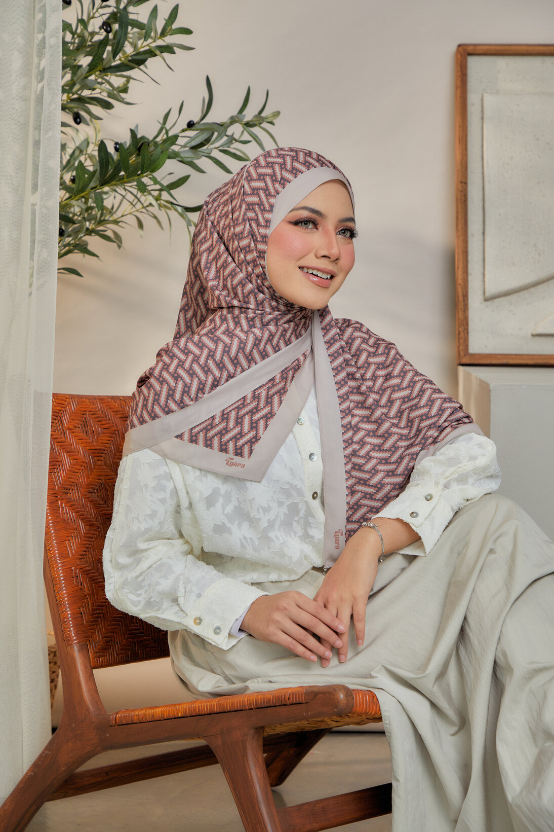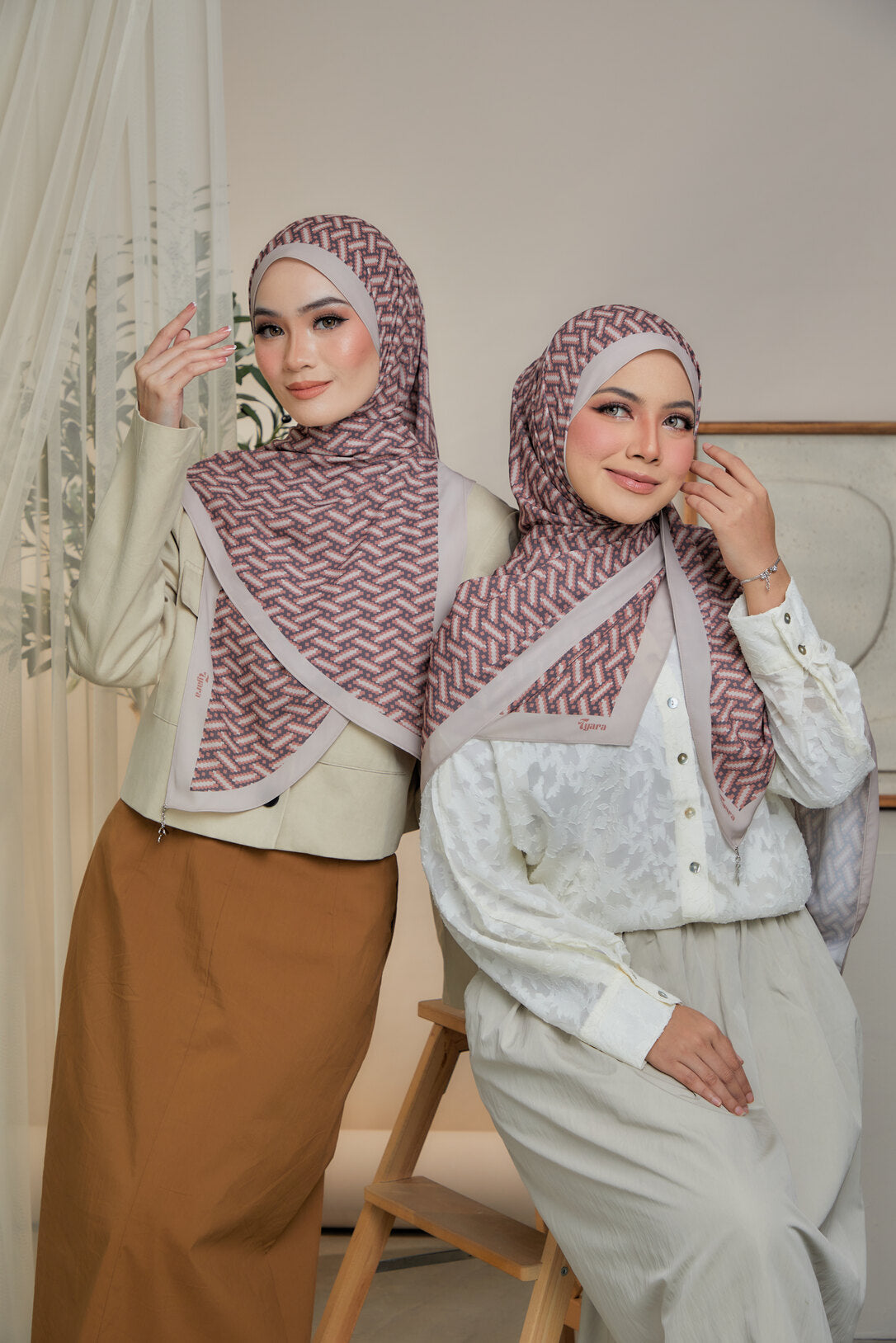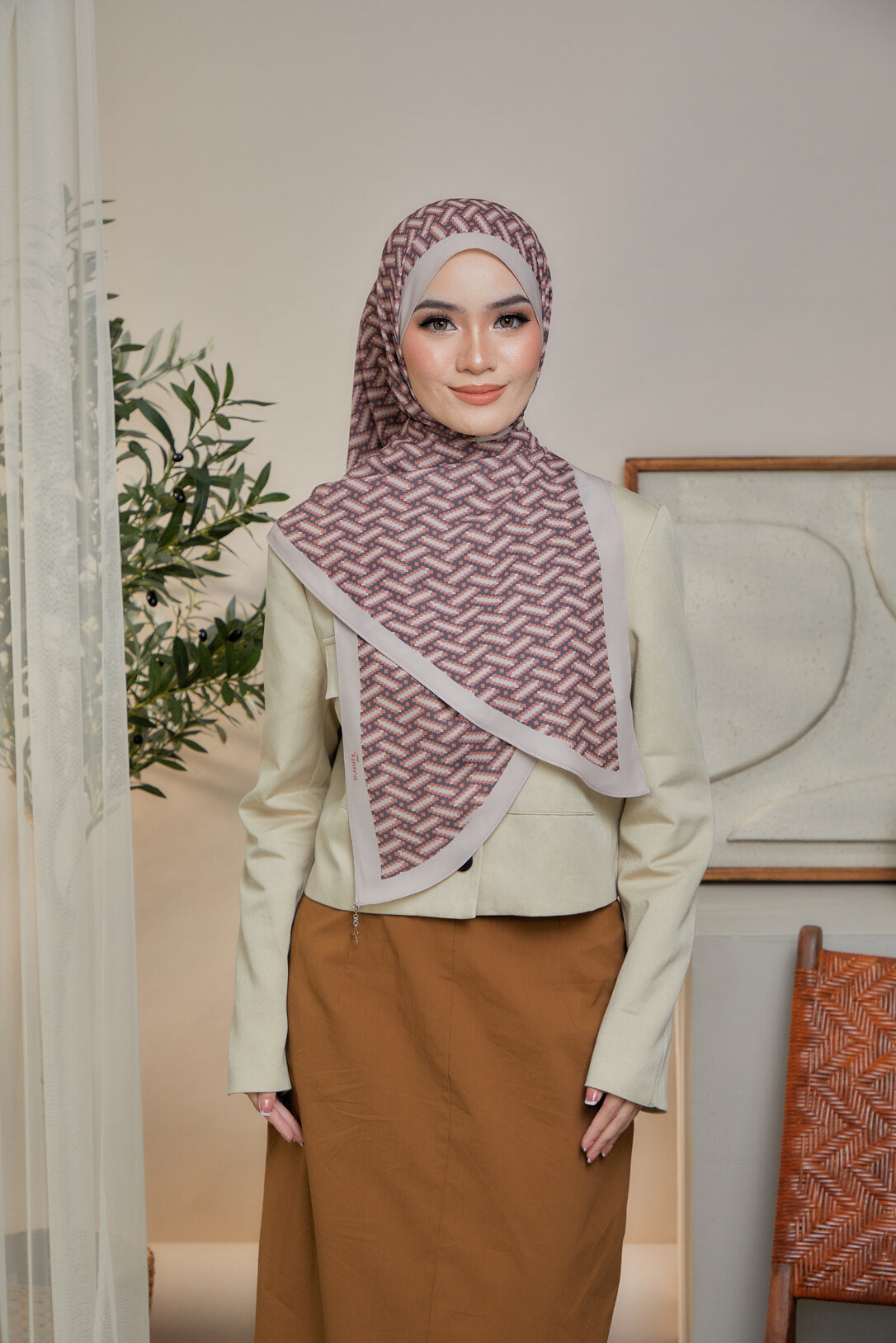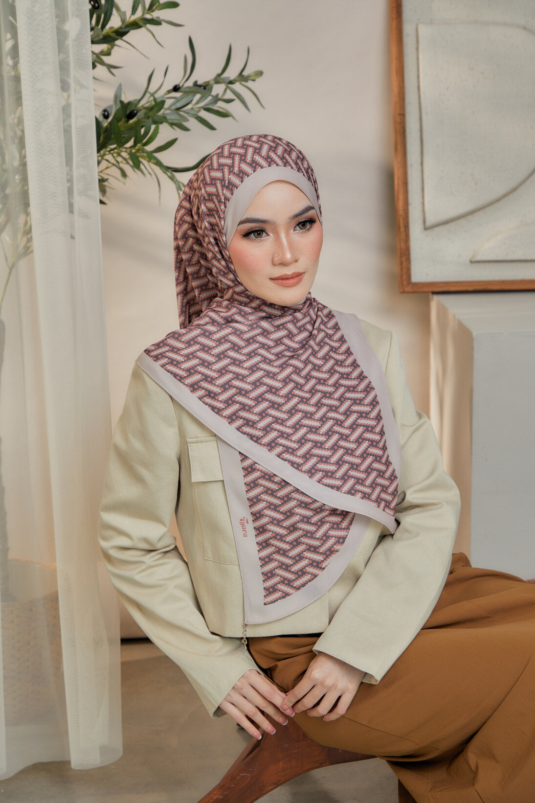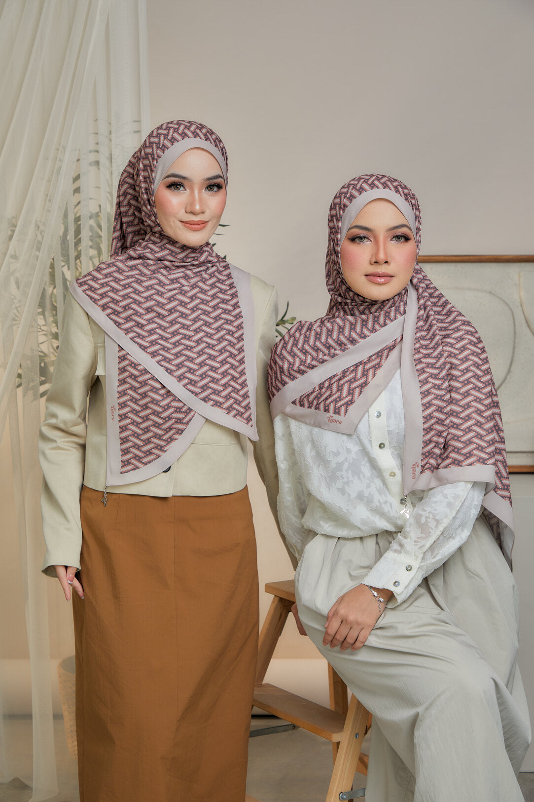A classic print that is minimal yet elegant. The Anyaman comes in 2 design variations for bawal selapis & shawl. "Anyaman" refers to traditional weaving techniques, often seen in various cultures.